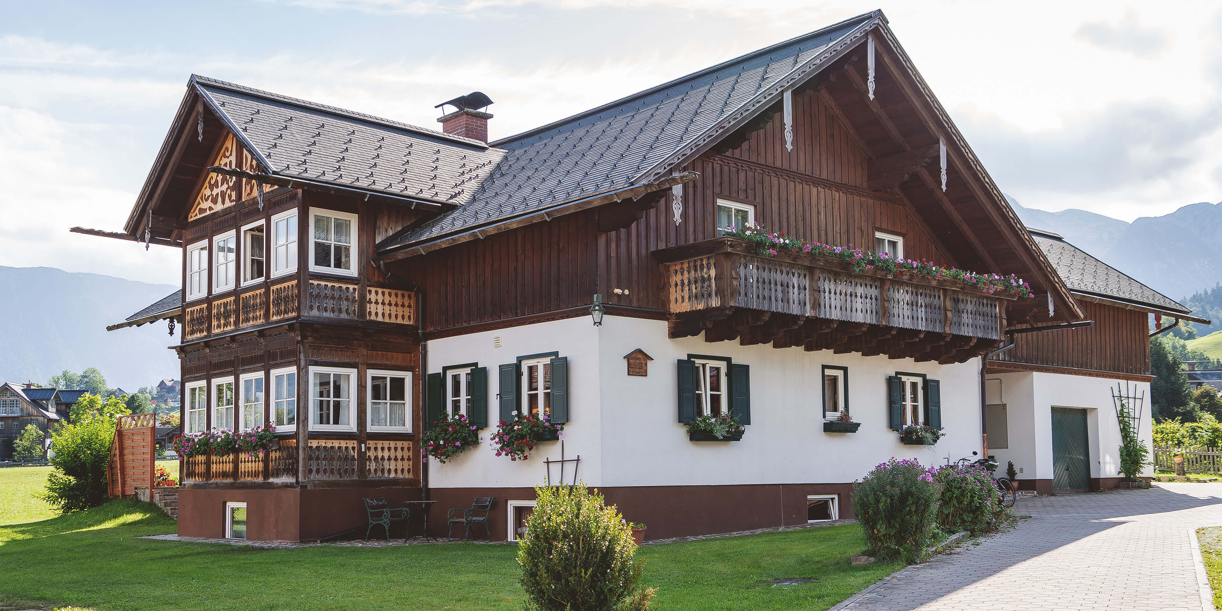 Das Haus Sonja liegt fern ab von Hektik und Trubel, inmitten grüner Wiesen und herrlicher Bergkulisse im steirischen Salzkammergut.